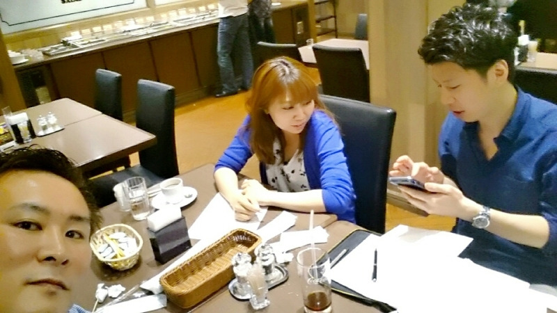 こんばんは!営業後に田家店長と中藤さんとミーティング。近くのVOLKSでご飯食べながらです。色んな事を話ながら……