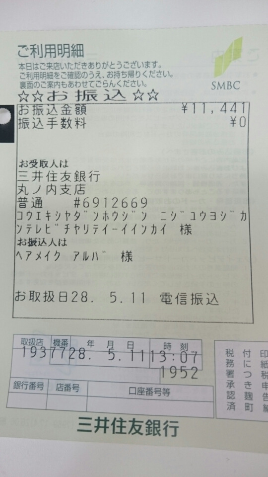 こんばんは!熊本の地震から1ヶ月でしたね。はやい復興を願ってます!私たちとお客様の気持ちを先日振り込んでしまし……