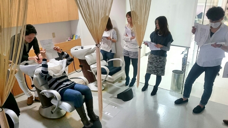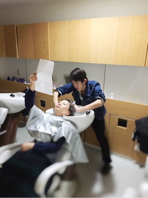 今年の1年生の三好くんのシャンプーレッスンしました!今回はシャンプーを、しながらトーク練習!中藤さんがカンペを……