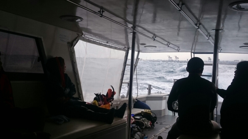こんばんは!沖縄の朝は、早いですね。5時過ぎに起きて移動。睡眠時間が2時間強。そして、ダイビングに!波も大荒れ……