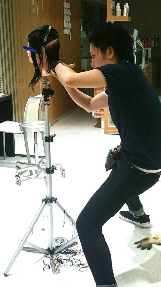 こんばんは!江坂の美容室ジョイの代表ケイ太です!カットベーシックのテストを受験してます。基礎中の基礎のワンレン……