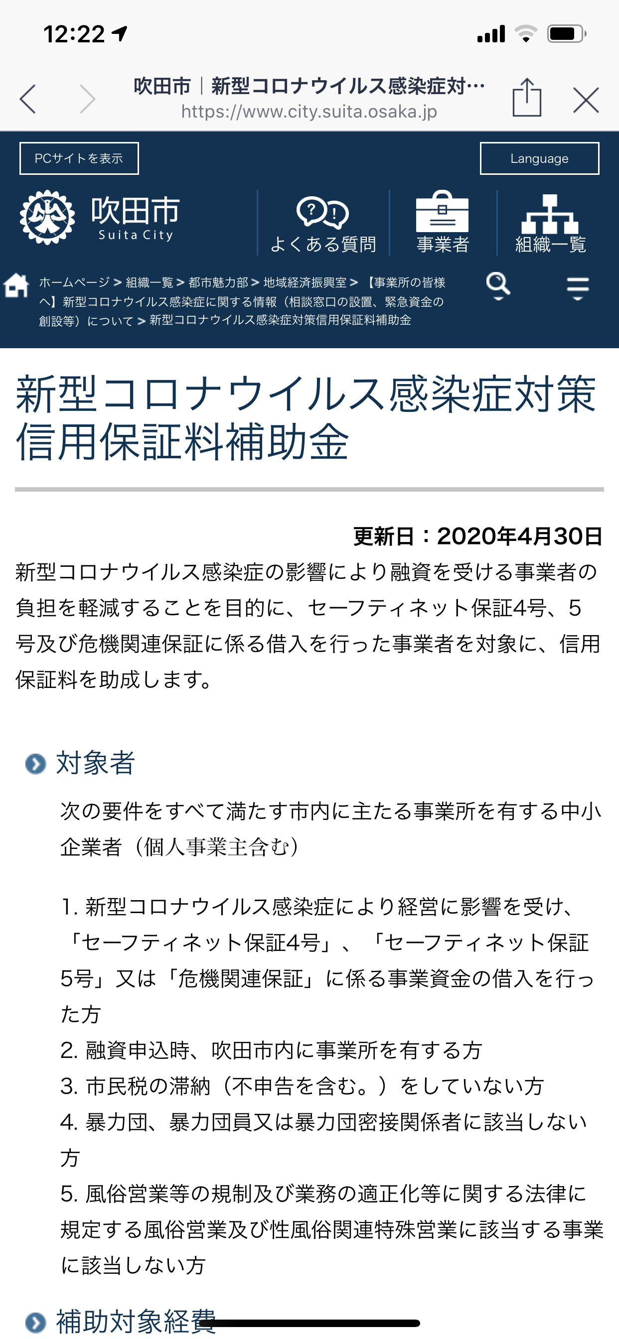 こんにちは!コロナに関する補償や補助金って様々ですね。国、大阪府、そして吹田市と様々な補償があり、今回は吹田市……