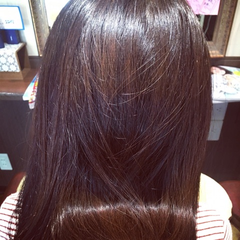 江坂 美容室 マチエールの古田です。今日はご来店のお客様に髪質が最近良くなってきているので、和漢彩染でさらに髪……