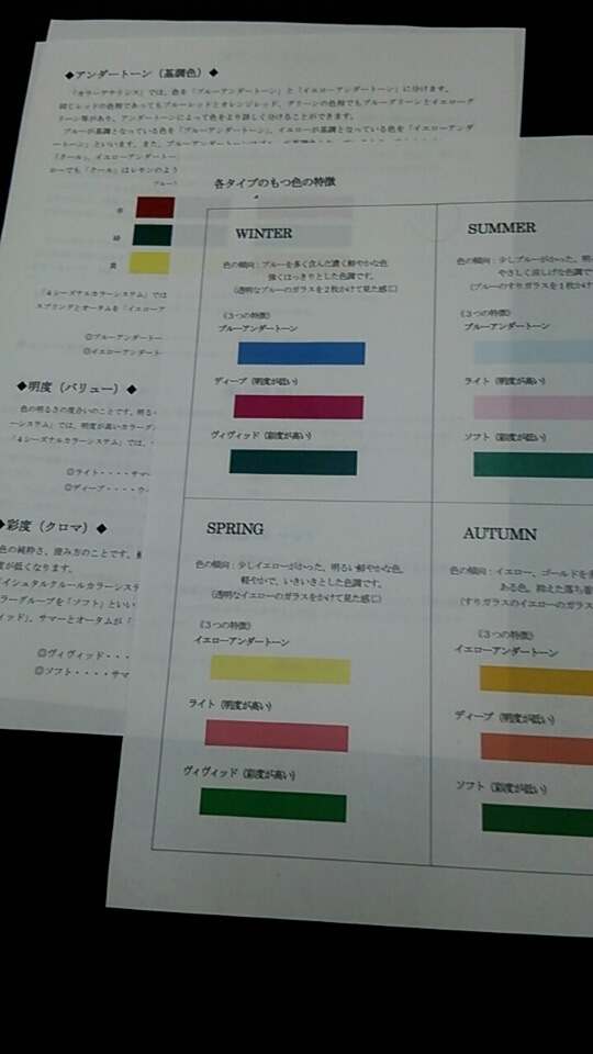 江坂 美容室 マチエールの古田です。昨日はカラー診断スクールにいきました。以前に、骨格診断スクール……
