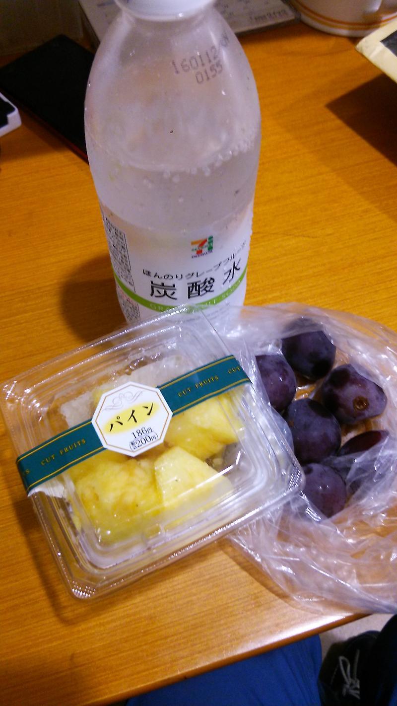 フルーツダイエット 2週目の最終日です。今日はパイナップルと葡萄と炭酸水。水を2リットル飲むのはツライ!!……