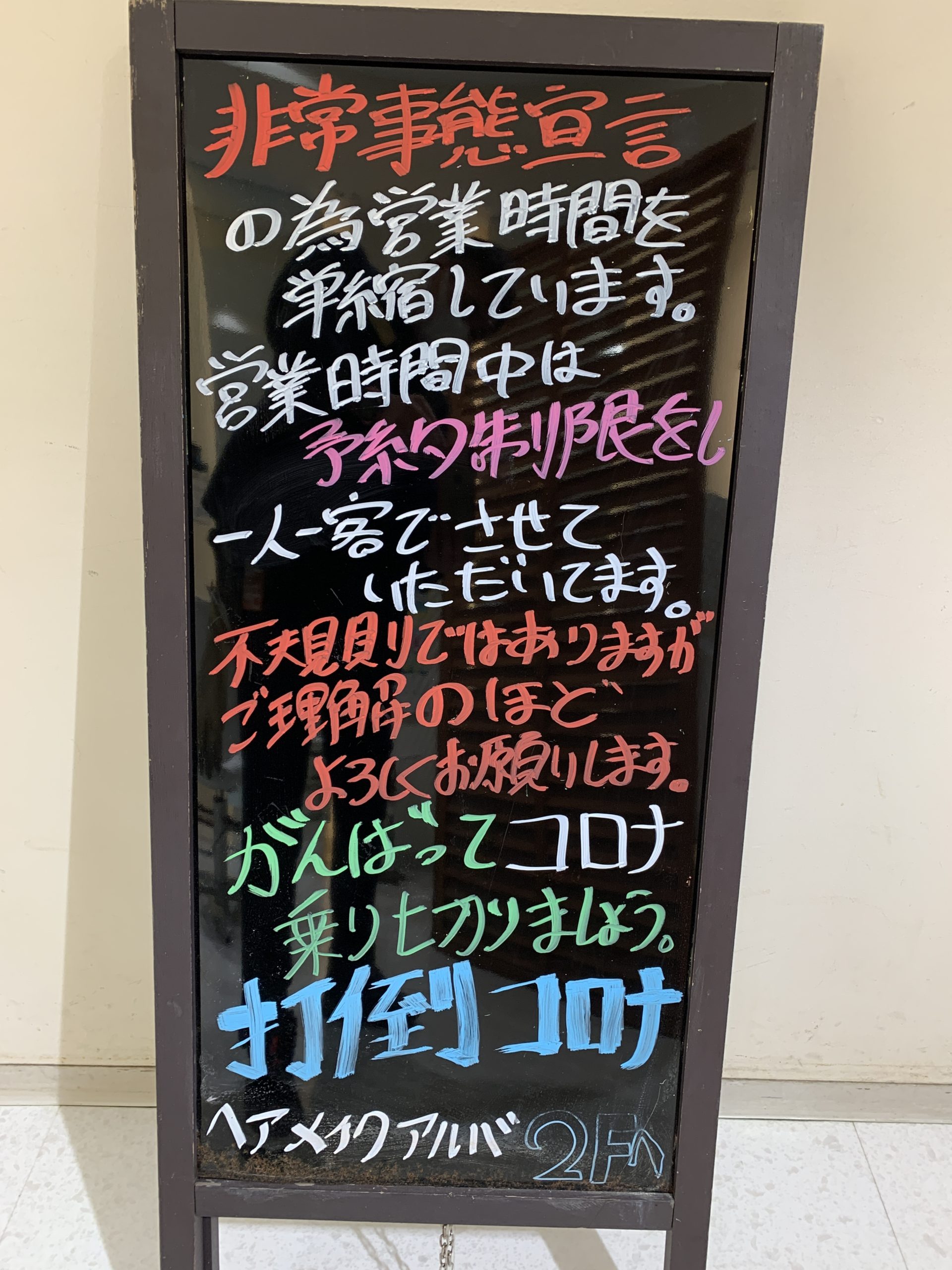 こんにちは!緊急事態宣言が出ている大阪の江坂より頑張って営業している美容室のアルバの村上です。緊急事態宣言によ……